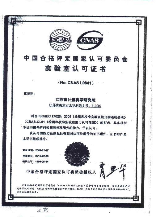 实验室认可证书