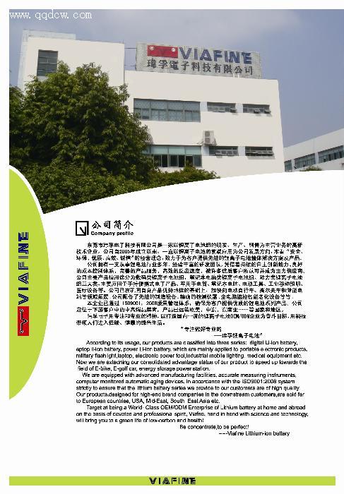 东莞市玮孚电子科技有限公司是一家以锂离子电池组的研发、生产、销售为主营业务的高新技术企业。公司自2005年成立以来,一直以锂离子电池的前端应用为公司发展方向,本着“安全、环保、优质、高效、诚信”的经营理念,致力于为客户提供先进的锂离子电池整体解决方案及产品。公司拥有一支从事锂电池行业多年、经验丰富的研发团队,凭借着持续的自主创新能力、良好的成本控制体系、完善的产品服务、高效的反应速度、被许多优质客户所认可并成为主力供应商。