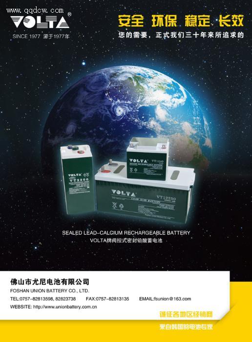 韩国VOLTA电池诞生于1977年,1983年首家获得韩国电信KOREN PTT电池质量认可和美国UL安全认证,为1986年亚运会和1988年汉城奥运会指定备用电源。随业务发展,VOLTA电池先后在韩国、印度、中国、伊朗等建有生产基地,其中国大陆生产基地------佛山市尤尼电池有限公司建厂于1988年,是中国最早专业生产阀控式密封铅酸电池的中韩合资企业,主要生产检测设备皆采用进口名厂设备,20%以上员工在韩国总部接受过专业培训,并拥有健全的ISO9001质量认证体系。迄今,公司规模生产6V/8V/12V 1.2AH-200AH及2V 80AH-1000AH各种规格,年产过千万只电池,其中70%以上出口至海外。2008年在广东清远投资兴建占地50亩的新生产基地,产能全部释放后年产值将达7亿元。