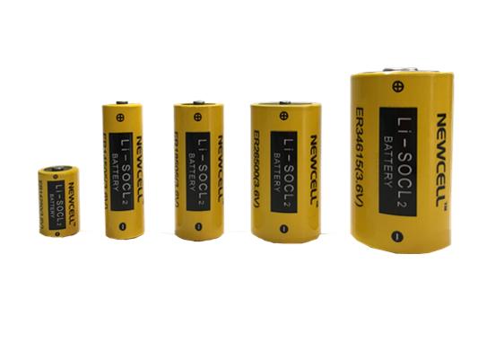 Newcell锂亚硫酰氯电池系列有ER14250 (1/2AA) ER14505 (AA 5号电池) ER18505 (A) ER26500 (C 2号电池) ER34615 (D 1号电池) 等规格型号。
