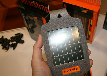 11月18日,一年一度的2009亚洲移动通信大会今天在香港拉开幕,虽然在本届展会上出现的手机产品并不多,但我们还是发现了一些有趣的东西,其中就包括这款名为SolarStrap的太阳能外接电池。