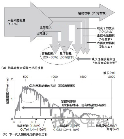 减少传输损耗的有效方法是控制带隙以利用大范围波长的光线。为减少量子损耗,将采用新原理,防止能量变成热量而散失。不过,减少量子损耗的新原理只停留在效果验证阶段。因此,目前正先行开发减少传输损耗的带隙控制技术。
