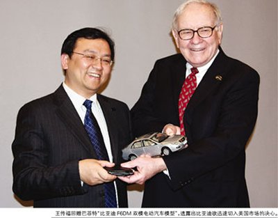 大陆记者问巴菲特可能在何种情况卖出比亚迪股票,巴菲特说:“我们一直都对比亚迪充满期待,我不打算去卖掉它。”