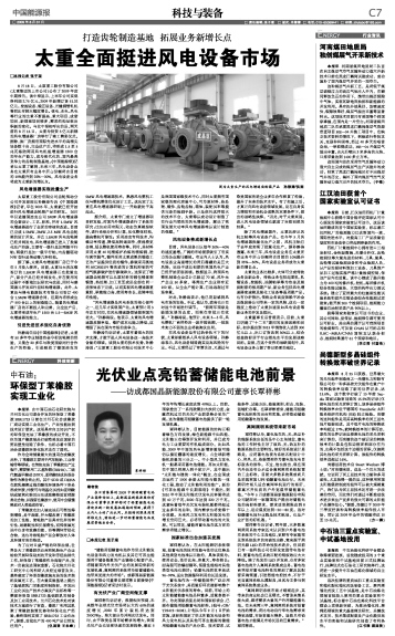 “储能用铅酸蓄电池作为供太阳能发电设备和风力发电机以及其它可再生能源用于储备能量的产业链核心配套产品,将随着国内外光伏产业的发展迎来新的发展机遇,离网照明系统将为铅蓄储能电池带来更庞大的市场”。成都国晶新能源股份有限公司董事长覃祥彬日前接受《中国能源报》记者采访时表示。
