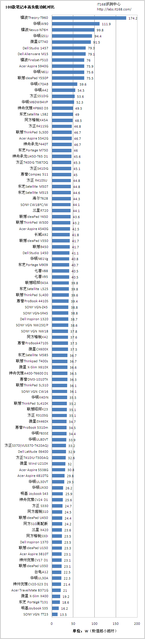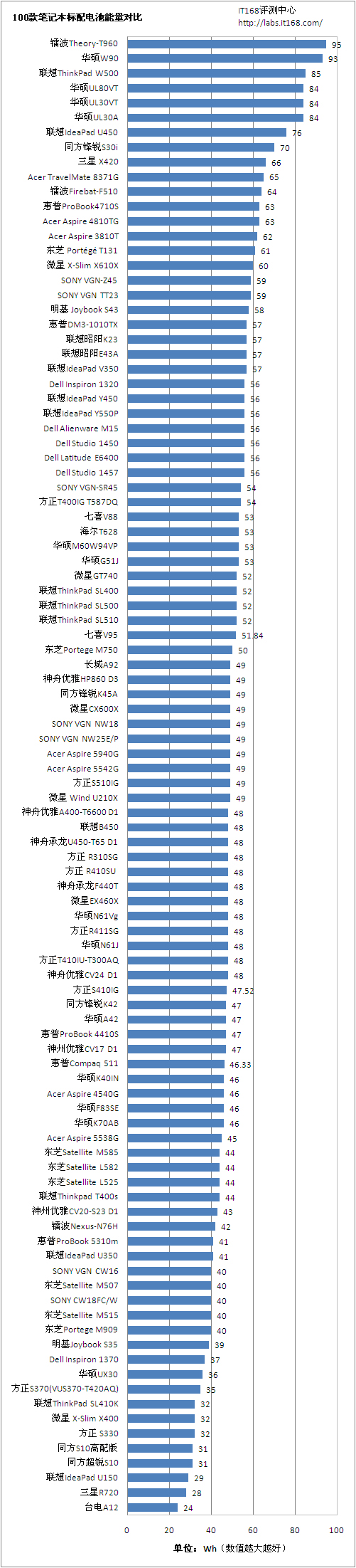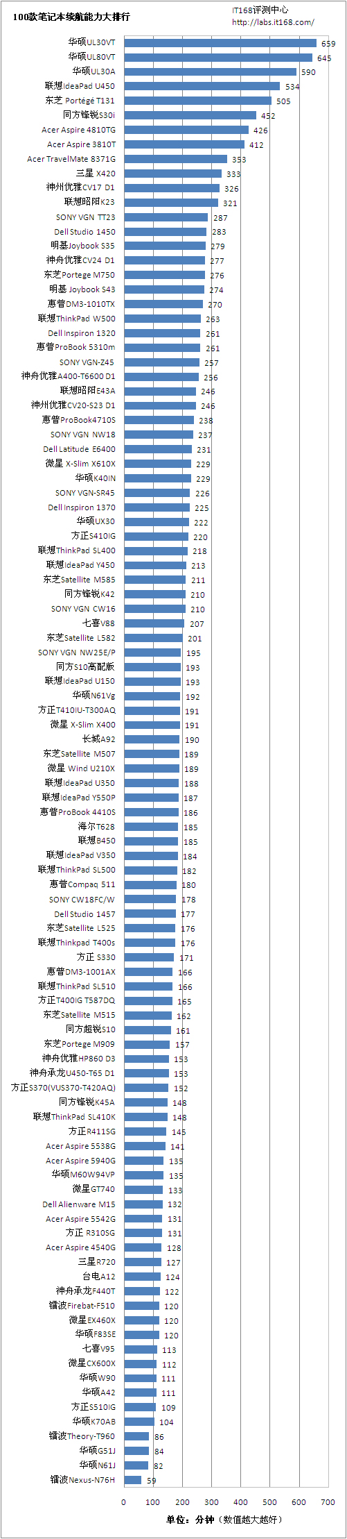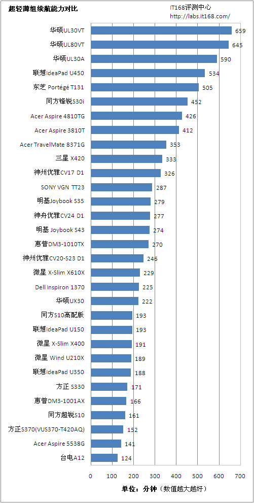 笔记本电脑的续航能力可以说是一个老生常谈的话题,可一直以来却是受到广大消费者的关注。其原因很简单,多数购买笔记本的网友无非就是看重其移动性,能够随处办公娱乐处理,特别是那些每周7*24小时工作的商务人士,随时随地办公是他们最想得到的。而一款笔记本的续航能力直接关系到笔记本电脑的应用环境,更出众的续航时间无疑会给用户带来随时随地的应用体验。出于以上考虑,我们在本期的续航能力大排行中将对目前市售的100款主流笔记本的续行能力进行一次全面对比。