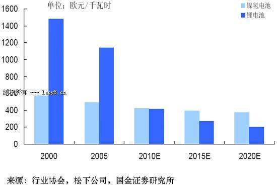 根据其分析(见图2),虽然2010年之前锂电池的成本高于镍氢电池,但锂电池的成本预计从2010年开始就将降到与镍氢电池相当的水平,之后锂电池的成本更将明显低于镍氢电池。