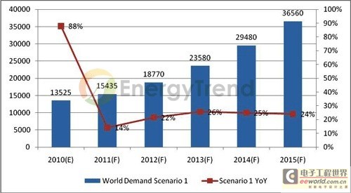 而集邦科技认为2011年市场需求的不确定因子为美国的量化宽松政策的实施和影响。由于传出美国有意实施第三次的量化宽松政策,将加深全球资金泛滥的现象,为了替过多的资金部位寻求出口,再生能源产业的投资将是最佳的选择。