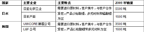 表 1 日韩主要锂离子电池正极材料生产企业