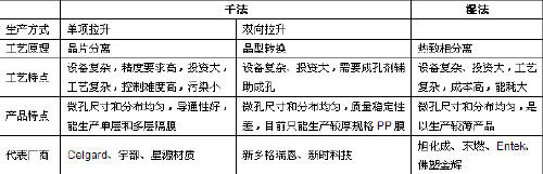 图表 4 锂离子电池隔膜生产工艺对比