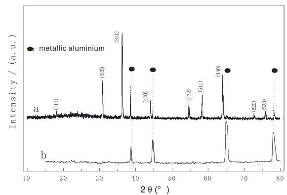 图5 循环三次后的LiNiVO4电极的非现场XRD图 (a) LiNiVO4电极;(b) 铝集流网