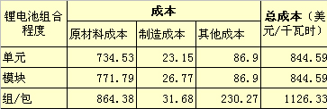 表1:锂电池成本分析