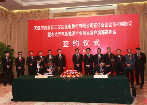 3月31日,滨海新区、滨海高新区分别与友达光电公司签署全面合作协议和项目落户协议。天津市委副书记、滨海新区区委书记何立峰,市委常委、常务副市长杨栋梁,副市长王治平出席签约仪式。