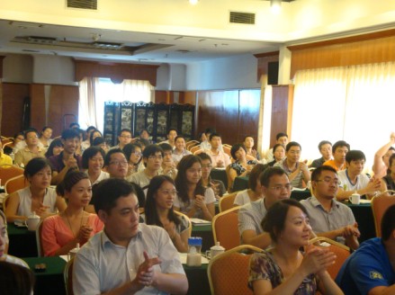 本次培训班的培训对象主要是针对杭州市电子商务、软件企业的中高级经营管理人员与市场营销骨干。活动邀请到美国德克萨斯州立大学(UTAustin)心理学博士、国际顶级潜能训练导师李育新。李育新教授讲解的“运用知识才能改变命运”、“沟通的黄金法则”等管理和沟通技巧引起学员的强烈反响,活动现场气氛热烈、掌声不断。活动圆满达到了帮助学员深入认识自己的沟通风格、提高对他人沟通风格的判断力、使沟通有更有效的心理定位、掌握与他人建立信任感的沟通技巧,以便提高学员的心理素质和工作效率的培训目的。
