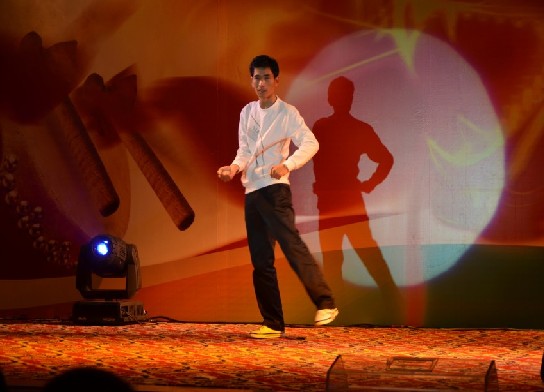 《鼓舞飞扬》几秒钟之后突然由远及近从舞台上传来鼓声,伴随着鼓声从稀到密,从小到大,宴会厅的灯光一盏一盏的也亮了起来,所有人都把目光停留到了这个早已被镁光灯聚焦的地方,抑扬顿挫的立体鼓点铿锵动听充满激情,热情奔放,催人奋进,也昭示精进能源的员工开拓进取的激情和对未来无比坚定的信心和勇气,现场不时爆发出一阵阵热烈的掌声,整个宴会厅被一种豪迈、自信所包围。