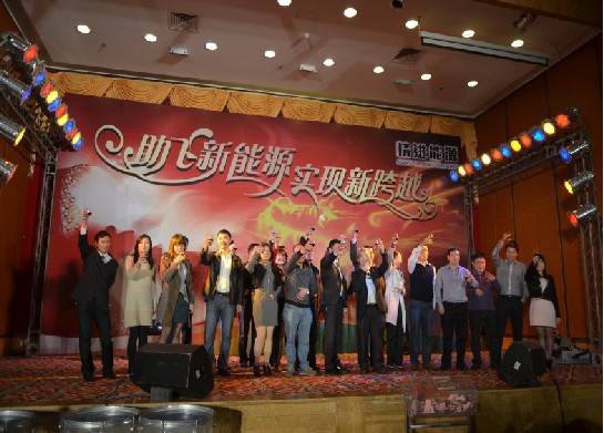 2011年12月15日晚,精进能 源有限公司“助飞新能源;实现新跨越”团年晚宴在鹿茵大酒店隆重举行,公司的总裁陈光森,广东省科技厅的周局长、周厅长等领导出席本次团年盛宴,和精进能源全体员工约二千人济济一堂,觥筹交错,共度美好的时光。