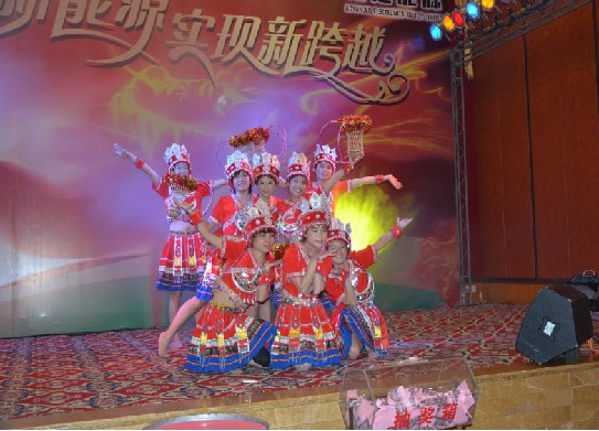 营销部美女们表演开场红的《苗岭连北京》唯美的舞姿赢得了满堂喝彩