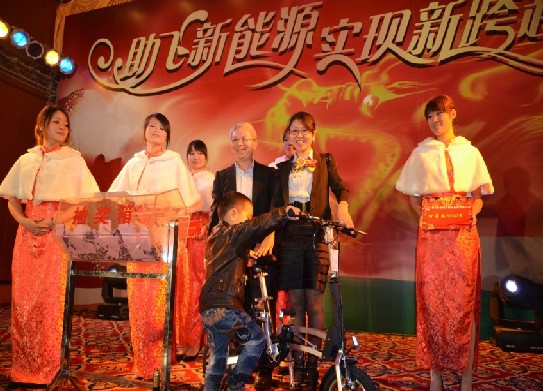 公司为了回馈各位同事和伙伴在过去一年为公司所付去的一切,精心准备了奖品,整个晚宴共有5轮抽奖,分别是安慰奖、四等奖、三等奖、二等奖、一等奖和特等奖,奖品有现金卷、智能手机、IPAD2、电动自行车、笔记本电脑及5000元现金大奖等,经过一轮轮激烈的抽奖,共有300多位同事获得奖品。