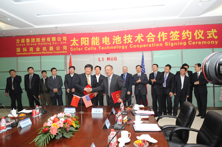 12日下午,力诺光伏集团和IBM宣布在晶体硅电池技术方面达成合作,通过技术革新提升太阳能电池转换效率。