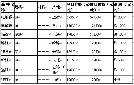 上一篇: 2011年6月16日沈阳有色金属市场行情