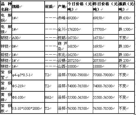2011年6月2日沈阳有色金属市场行情