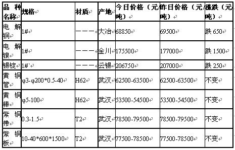 2011年6月2日武汉有色金属市场行情