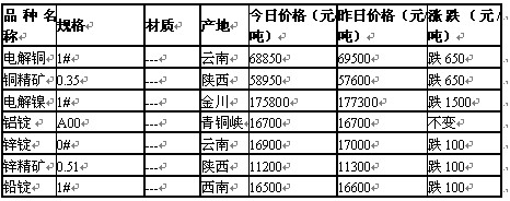 上一篇: 2011年6月2日武汉有色金属市场行情