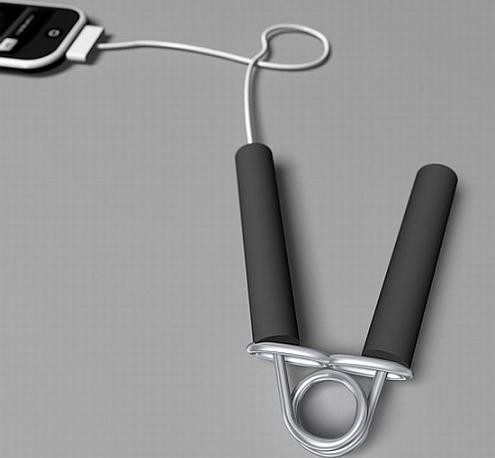 如果你喜欢用握力器锻炼手劲又刚好有一部iPhone手机,那么这款设计将会非常适合你。它表面看来只是一个普通的握力器,然而当你不停的捏紧握力器的时候,所产生的动能就会被转换成电能为iPhone手机充电。