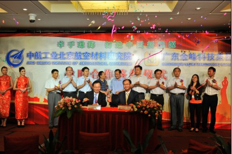 据介绍,广东金峰科技集团是一家现代高科技企业集团,主营业务涵盖储能用锂电池和车用锂动力电池,拥有发明专利30多项, LDC车用锂离子动力电池为集团核心技术。而中航工业北京航空材料研究院,则是中国面向航空领域的综合性材料研究机构和最大的材料工程研究中心之一,拥有科技成果2400余项。