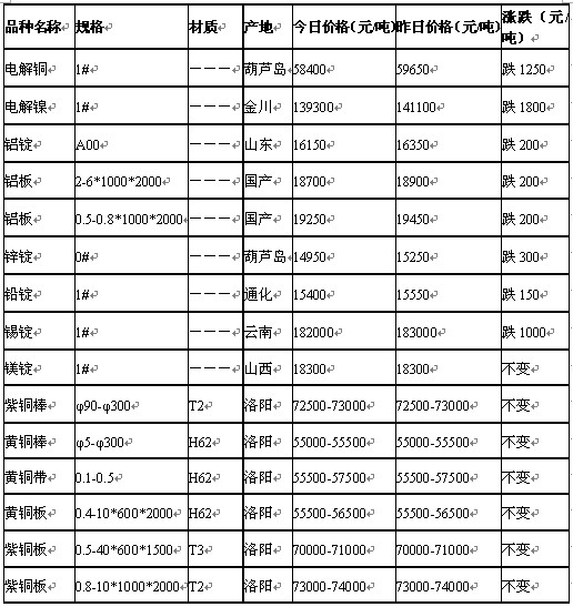 2011年9月14日济南有色金属市场行情