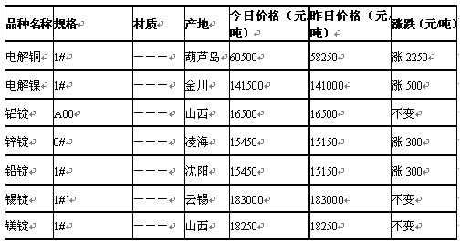 2011年9月15日北京有色金属市场行情