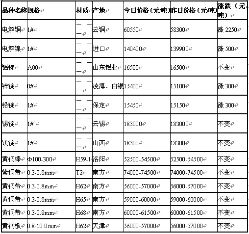 上一篇: 2011年9月15日济南有色金属市场行情