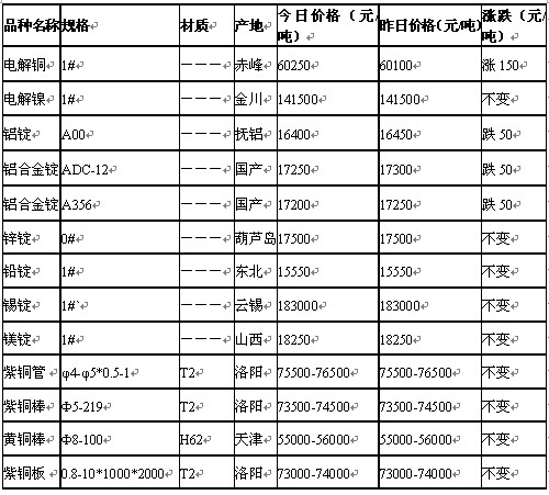 2011年9月15日沈阳有色金属市场行情