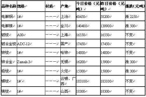 上一篇: 2011年9月19日沈阳有色金属市场行情