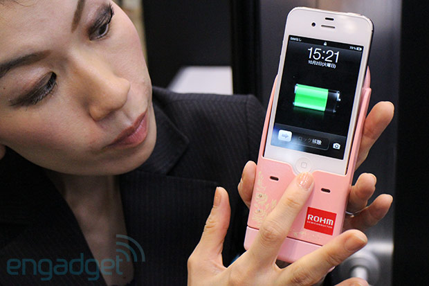 在现场看到了两种电池形态,一种是通过智能手机套的方式,直接插入手机来充电;另外一种是通过USB延长线的方式,可以给多种设备充电,两者都具备了5Wh的容量,差不多2个小时可以充满一台手机。另外还有一个200W的大容量手提式氢燃料电池,只有3kg的重量,可以给笔记本电脑、电视机、其它外设等提供3到4小时的电力。Rohm告诉我们,在2013年的时候,这种氢燃料电池会进入商业化量产阶段,希望到时候能够给移动数码设备带来新的外置电源选择。