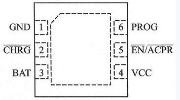 LTC4065采用了热处理能力较强的6引脚小外形封装(DFN),且实现产品无铅化,底部采用裸露衬垫,直接焊接至PCB以实现电接触和额定散热性能。引脚排列如图1所示。