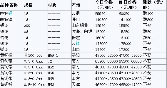 2012年3月1日天津有色金属市场行情
