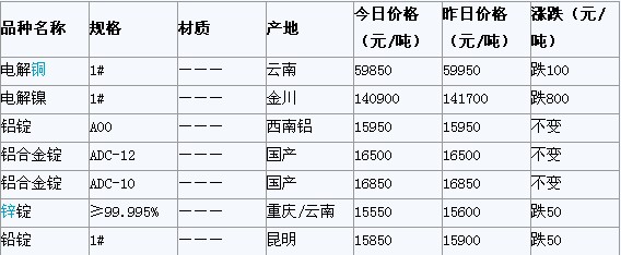 2012年3月1日重庆有色金属市场行情