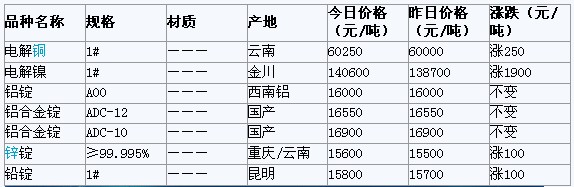 2012年3月14日重庆有色金属市场行情
