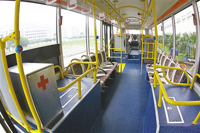 据介绍,该款电动客车全车身采用轻质铝合金和高强度复合材料,在增加了近两吨重电池的情况下,整车装备质量仅相当于甚至低于国内同类规格的柴油车。据相关技术人员介绍,该客车整车电池总储电量为220kwh,充一次电基本可满足一天运行的要求,其能源成本约为柴油车的三分之一左右。同时,相关设计人员采用人性化设计,全车智能化电子信息系统、可视化提示和警示标识,分布在整个车厢的各个角落,另外车厢内专设了残疾人乘坐区域、乘坐设施,并在乘客门踏步区增设了供残疾人上车的电动伸缩踏板。