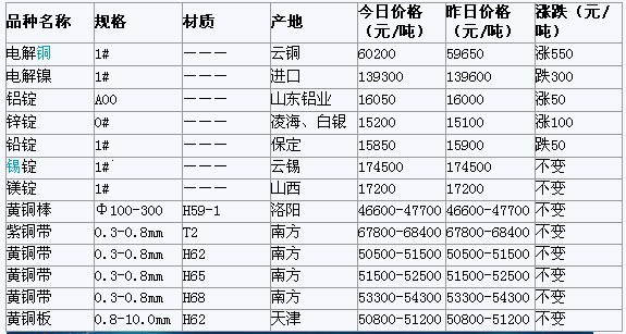 2012年3月16日天津有色金属市场行情