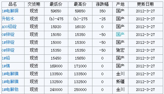 2012年3月27日广东有色现货报价(南储)