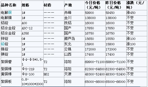 2012年3月9日沈阳有色金属市场行情