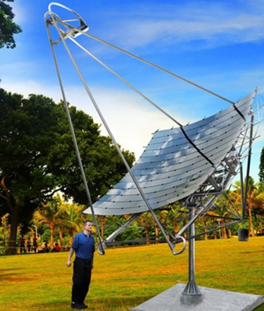 “太阳帆”的工作原理在于采用一个长宽都是12英尺的聚光镜将太阳光聚集,从而将太阳能转换为热能.天气晴朗的时候,太阳帆可以持续提供高温水蒸气.这些高温水蒸气可以有多种用途.其中包括工业处理,室温调节,光伏发电等.