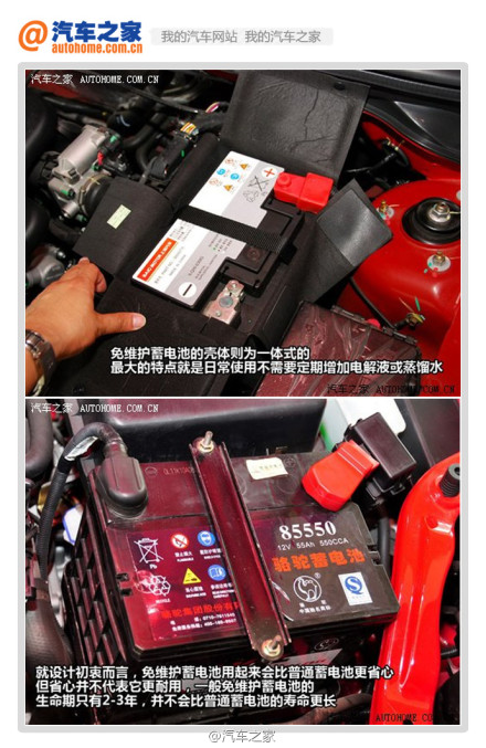 【免维护蓄电池】 免维护蓄电池,顾名思义最大的特点就是“免维护”。和铅酸蓄电池比它的电解液的消耗量非常小,在使用寿命内基本不需要补充蒸馏水。它还具有耐震、耐高温、体积小、自放电小的特点。当然相对的,它的售价也会比铅酸蓄电池更贵。