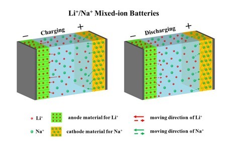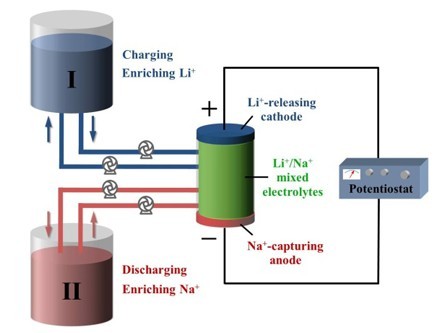 图2:混合离子电池分离Li+/Na+的原理示意图