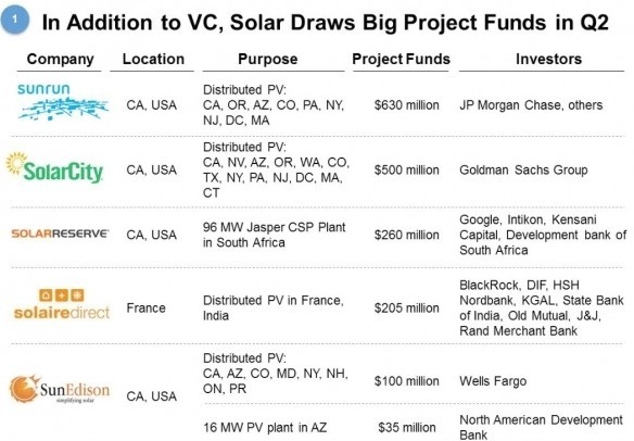 Sunrun在项目资金领域筹集最多资金,多达6.3亿美元,而SolarCity筹集五亿美元,SolaireReserve筹集2.6亿美元。