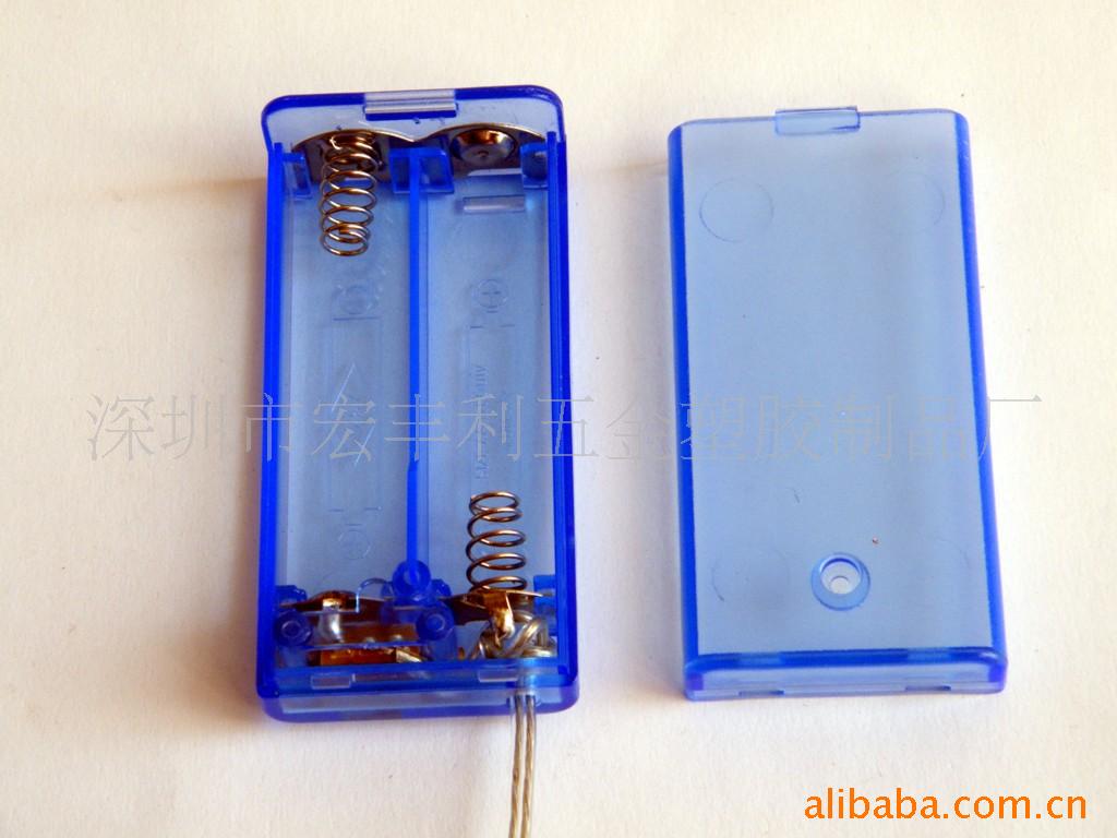 供应5号2节带盖透明蓝色电池盒