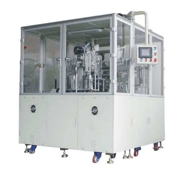 本机为聚合物锂离子动力叠片式电池而精心开发的一款全自动设备,可以实现极片包隔膜、正负极片相叠的一体化专用设备,配合捆包手段,即能完成电芯的整体装配,