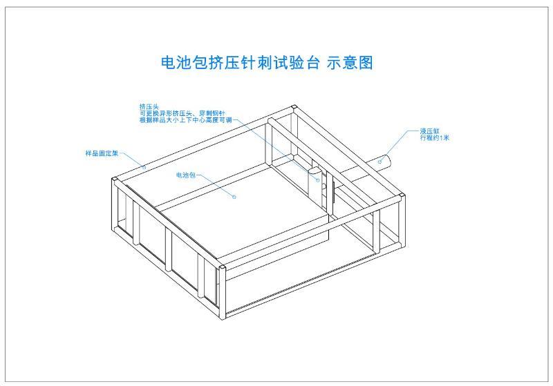 电动汽车用锂离子动力蓄电池包和系统挤压/针刺试验装置适用于GB/T 31476.3-2015《电动汽车用锂离子动力蓄电池包和系统 第3部分: 安全性要求与测试要求》7.6条规定的电动汽车用锂离子动力蓄电池包和系统挤压/针刺试验专用的检测设备,QC/T 743-201x《电动汽车用锂离子动力蓄电池》6.2.6.6-6.2.6.7条/6.3.13.5-6.3.13.6条规定的电动汽车用锂离子动力蓄电池单体/模块挤压/针刺试验专用的检测设备,其技术指标符合GB/T31476.3-2015等相关要求。