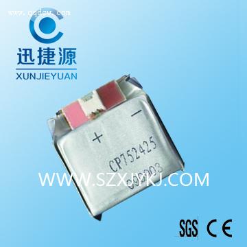 - CP752425 尺寸:5.0*24*41MM 电压3.0V 容量:850毫安 内阻:R<=3欧姆 最大连续放电电流:60mA 最大脉冲电流:100mA 自放电:2%年 工作温度-20+85重量9g!注意
